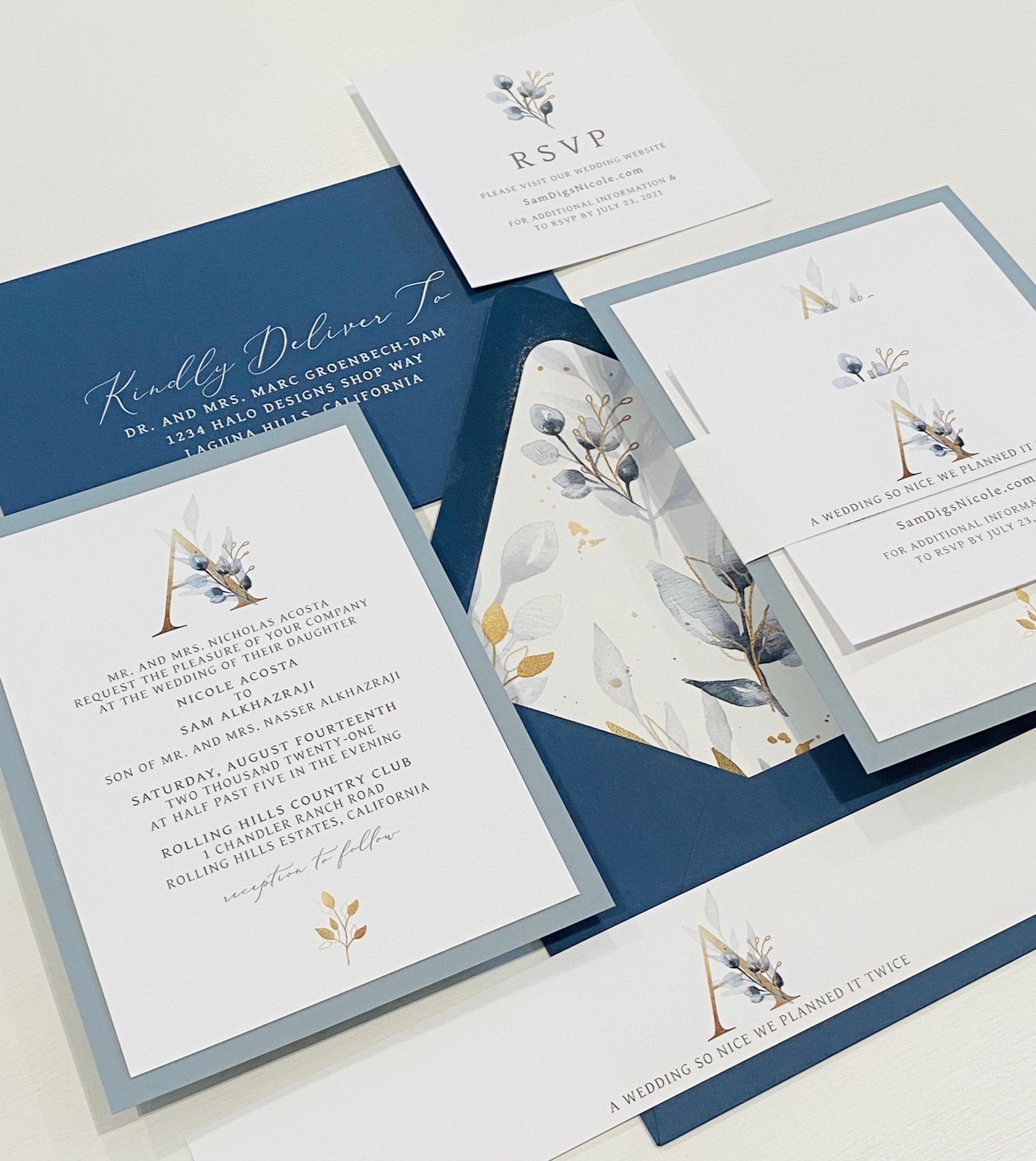 - 5x7 printed invitation (plus smaller inserts if selected)